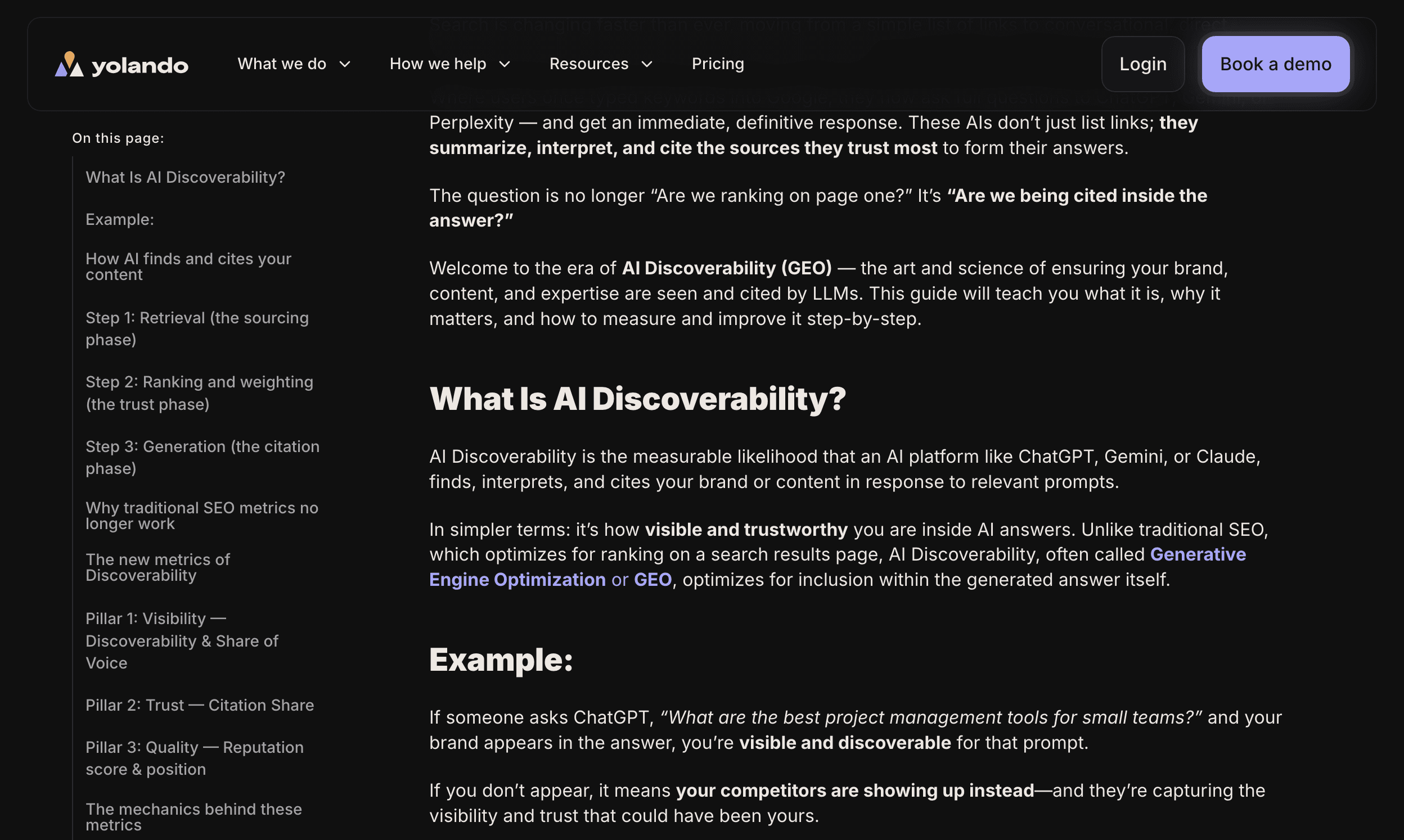 AI models evaluate each page differently and so should you. Built for 11 different content types, the Yolando Chrome extension provides clear recommendations to optimize your site for AI citations and mentions.